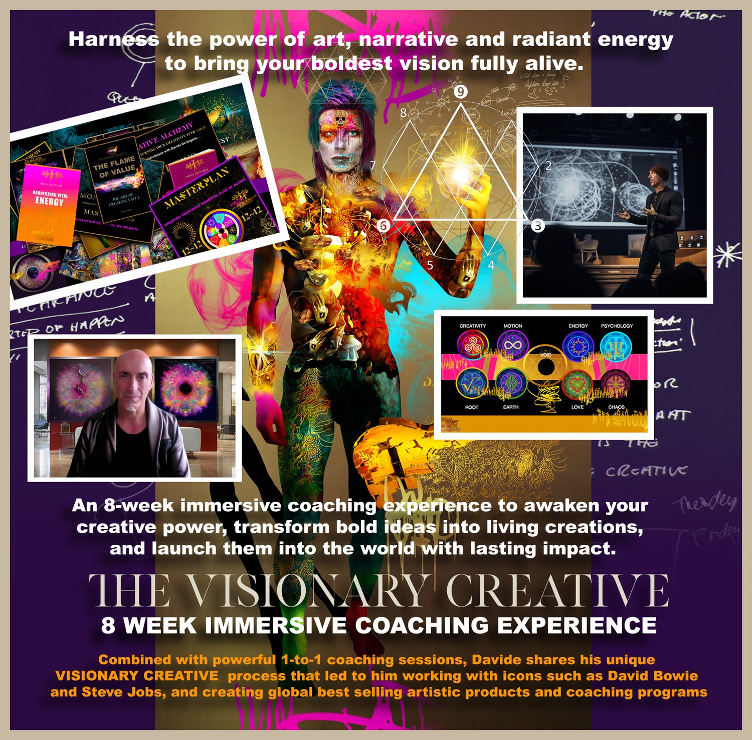 A high-level mentoring process designed for Creative-led Entrepreneurs building visionary projects and products: Founders and innovators seeking clarity and breakthrough ideas: Leaders navigating major life or career transitions who need to reinvent.