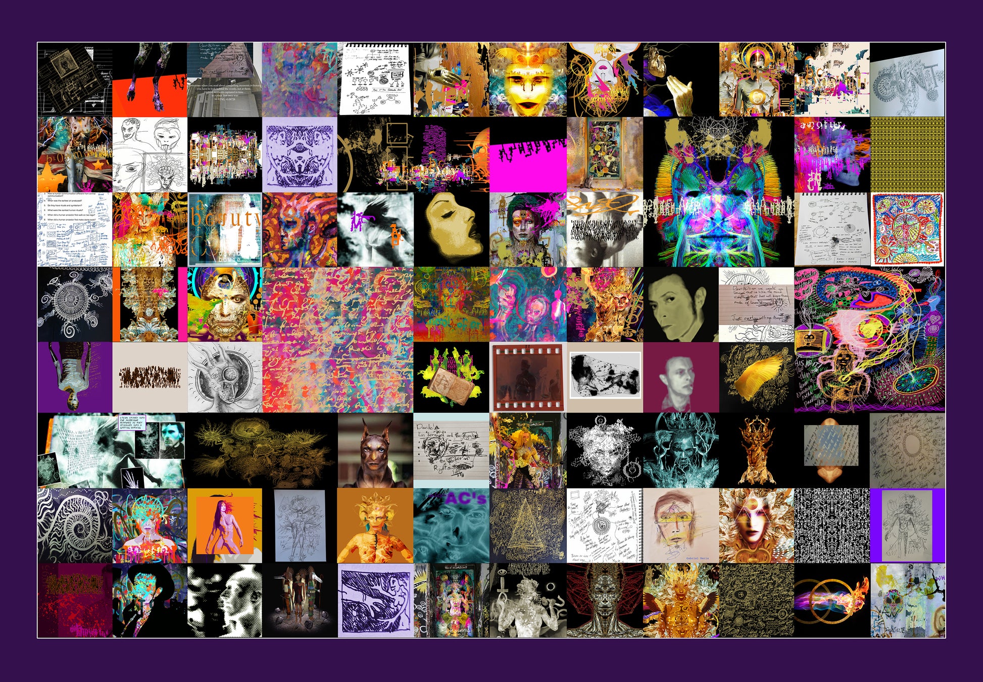 An amazing opportunity to own this completely unique Art Print documenting the creative process of Davide working with Bowie. This Artwork is comprised of original notes, sketches and pioneering digital art experiments created through their artistic collaborations in the 1990's. It includes images and concept drawings from Davide's personal archive, several of Bowie's notes and collaborative drawings, never before seen. DERANGED gives a vivid, living insight into how these two creators explored ideas, themes of philosophy alongside ancient mysteries and futuristic visions. This print is part of a Limited Edition of 100. Printed on exceptional high quality German Metallic Art Paper, colour quality guaranteed for a hundred years.